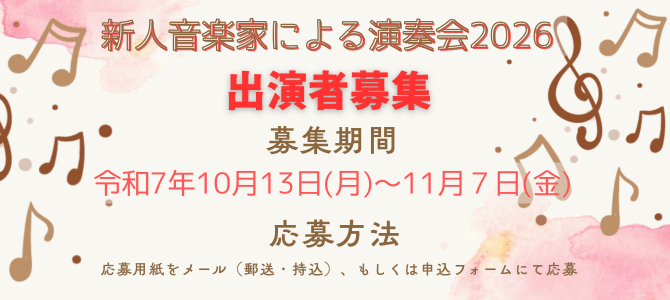 募集【募集】新人音楽家による演奏会2026 出演者募集 [2025/10/01]